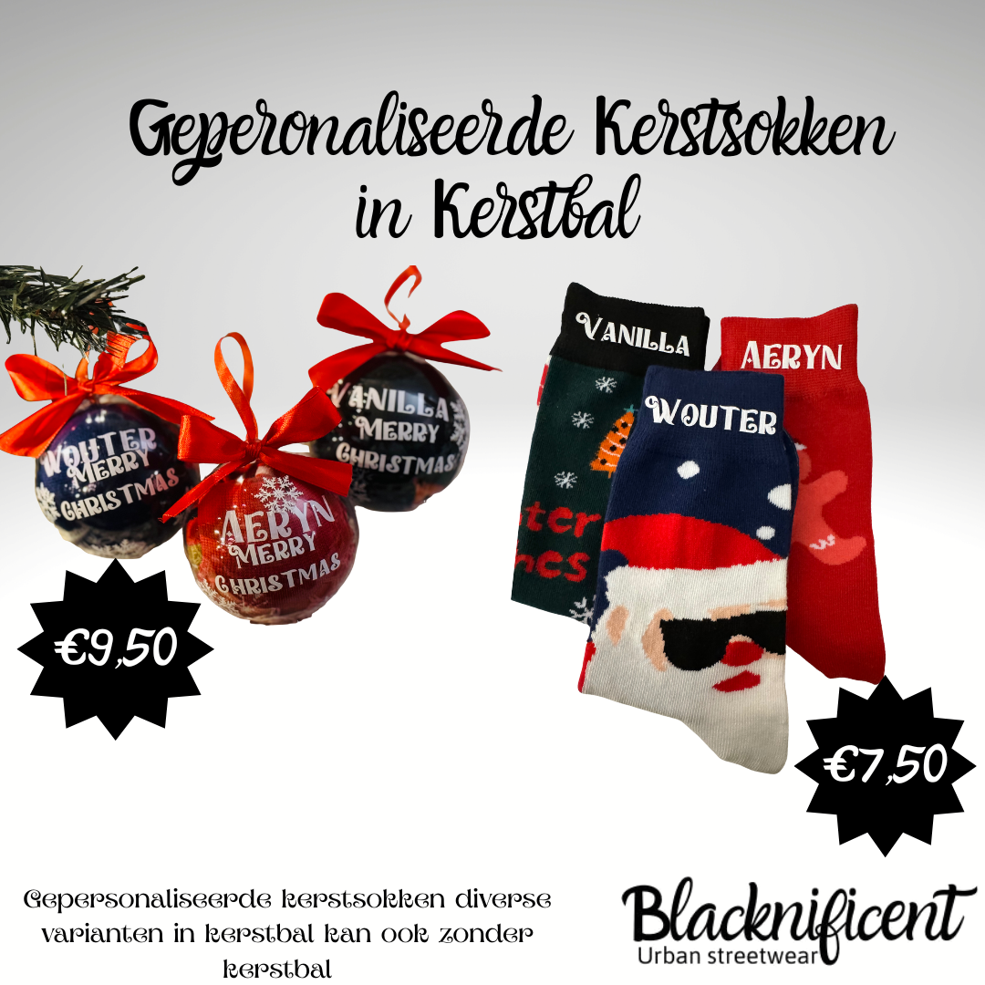 Gepersonaliseerde kerstsokken in diverse varianten in kerstbal ook mogelijk zonder kerstbal.
